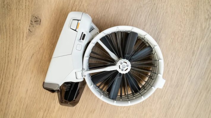 So với thiết kế cách quạt của DJI Neo, thiết kế bộ bảo vệ cách quạt của DJI Flip có độ chắc hơn cả. Bởi các tấm chắn cánh quạt được làm bằng polycarbonate kết hợp với sợi carbon ở phía trên và dưới rất nhẹ nhưng cho độ chắc chắn cao. Điều này giúp máy bay chống va đập hiệu quả, tránh hỏng hóc. Đồng thời, thiết kế này cũng đảm bảo an toàn bay, cho phép cất và hạ cánh trên lòng bàn tay mà không gây nguy hiểm cho người dùng.