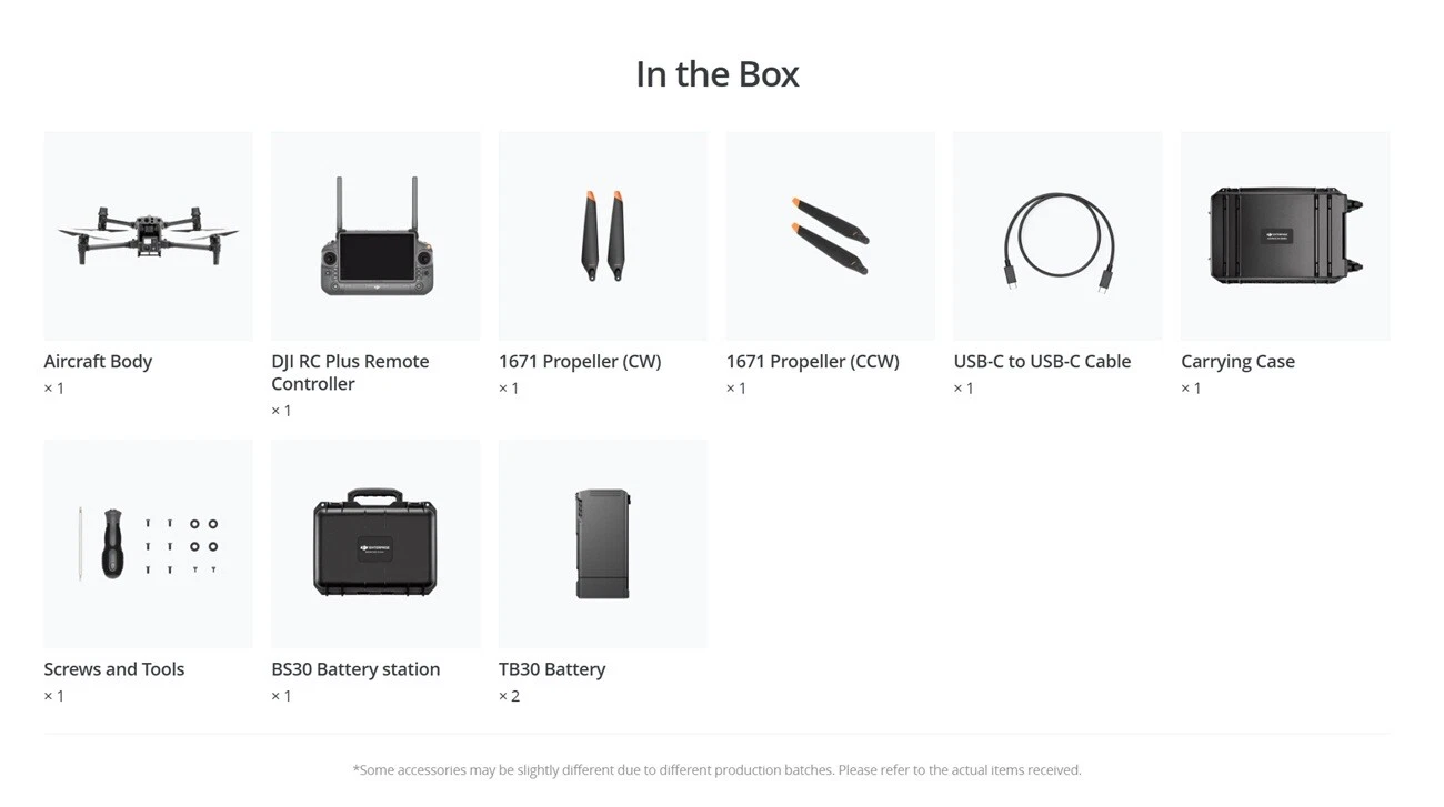 | Trọng lượng cất cánh | 3.77 kg (Bao gồm 2 pin TB30) |